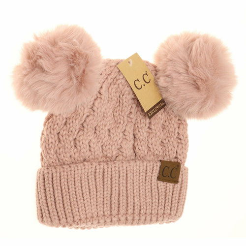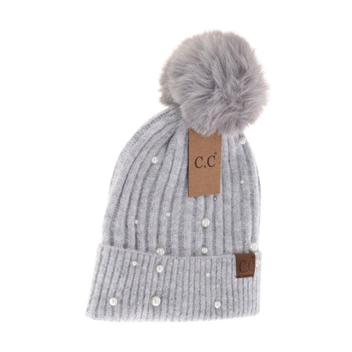Pearl Embellished Faux Fur Pom C.C Beanie