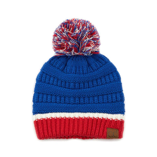 Buffalo Check Mixed Print Fur Pom C.C Beanie