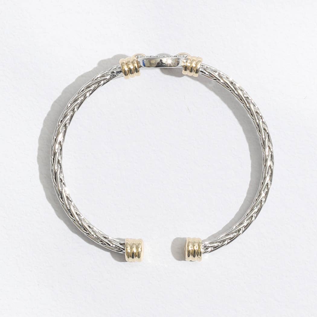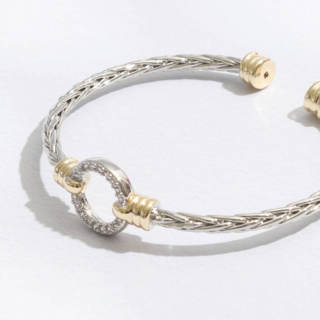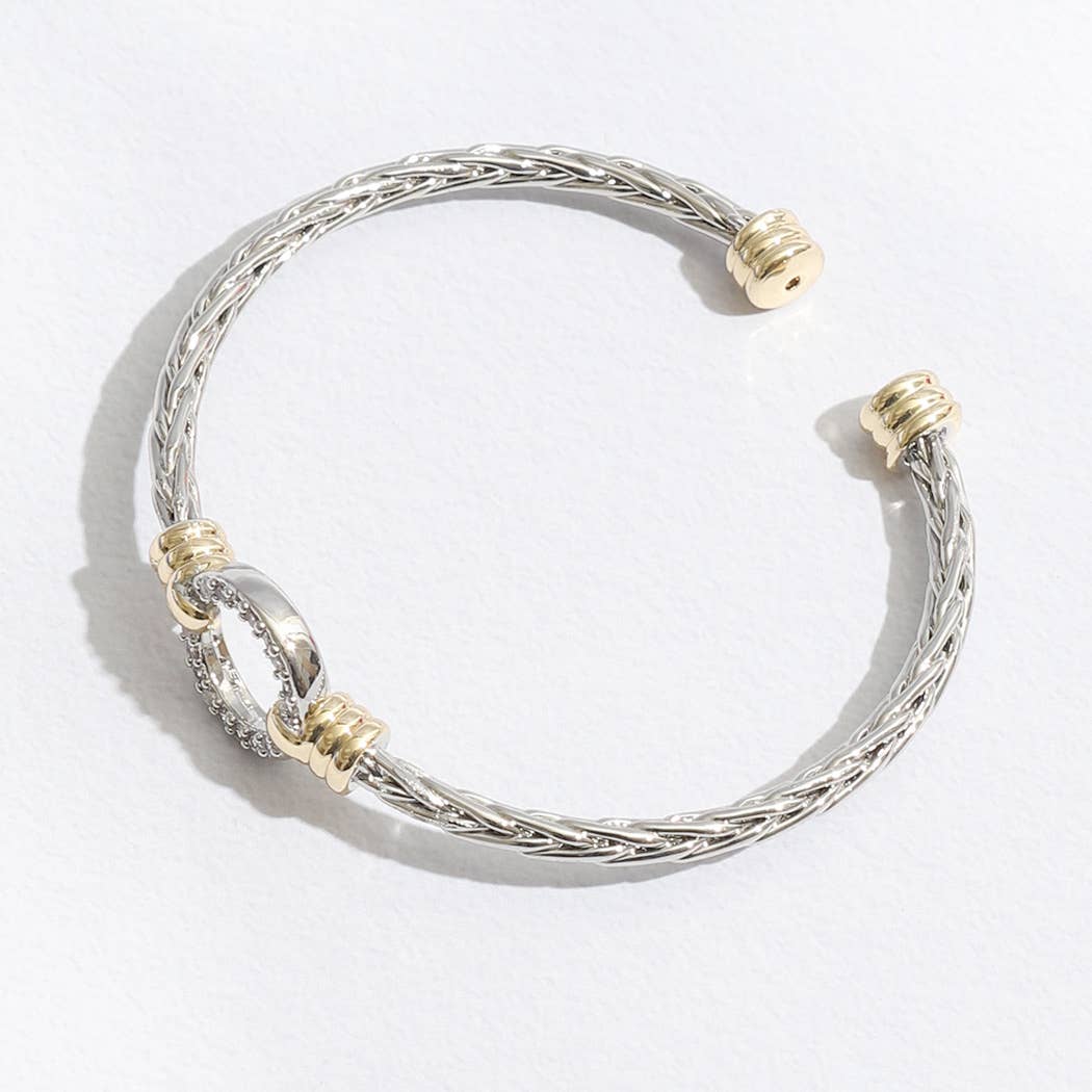 Braided Bangle CZ Two Tone Cuff Bracelet