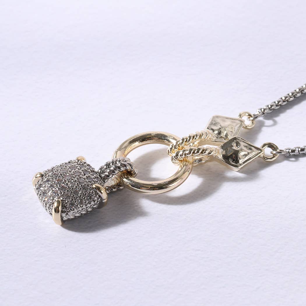 Sophistication meets sparkle with the Square Pendant CZ Pave Necklace. This elegant piece features a square pendant adorned with dazzling cubic zirconia (CZ) stones in a pave setting, making it the perfect accessory to add a touch of glamour to any outfit.