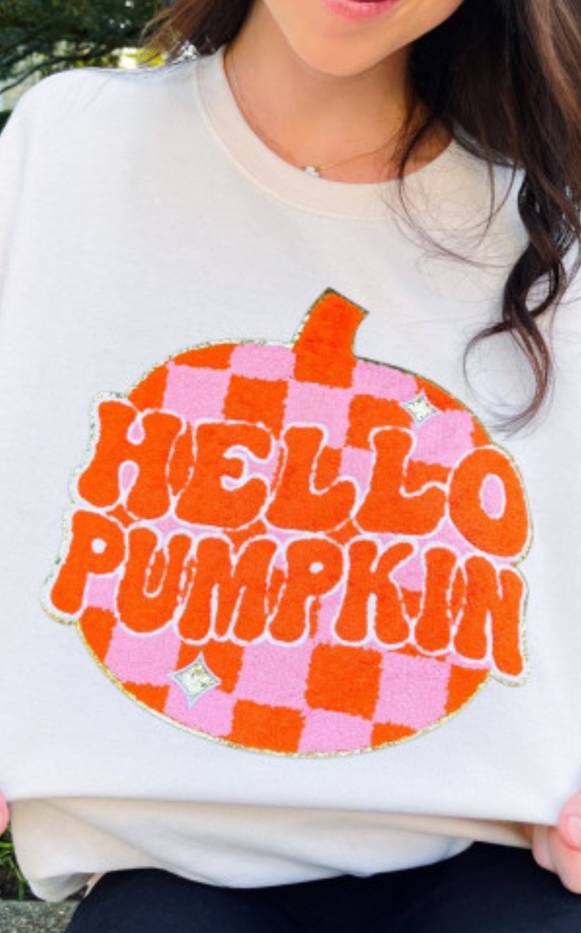 Our Hello Pumpkin White Sweatshirt adds a cheerful and fun mood to your autumn events! In SMLXL True to Size
