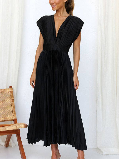 A-Line Loose Pleated Midi Dress